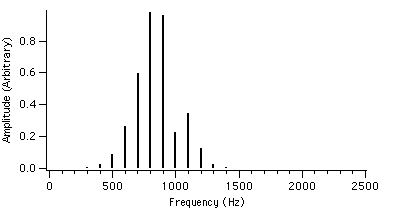 An array, i.e. reserved memory in the computer, is declared to store the calculated amplitudes for the respective frequency components. Its size is determined by the a constant MaxFreqToPlot, which is the highest frequency component we want plotted on the graphics screen of the computer.