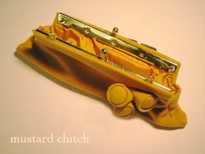 New / 01 10 05Mustard clutch Handmade by Gauri and Audry Materials: wool with silk lining, metal clasp