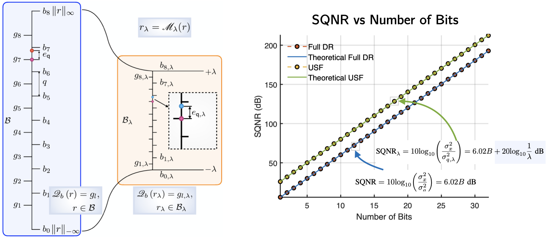 One of the key achievements of the USF is proving that, under certain conditions, the quantization noise is a bounded representation that preserves all information from the original signal. The conditions depend on the input signal class, as further explained in the Signal Classes section.