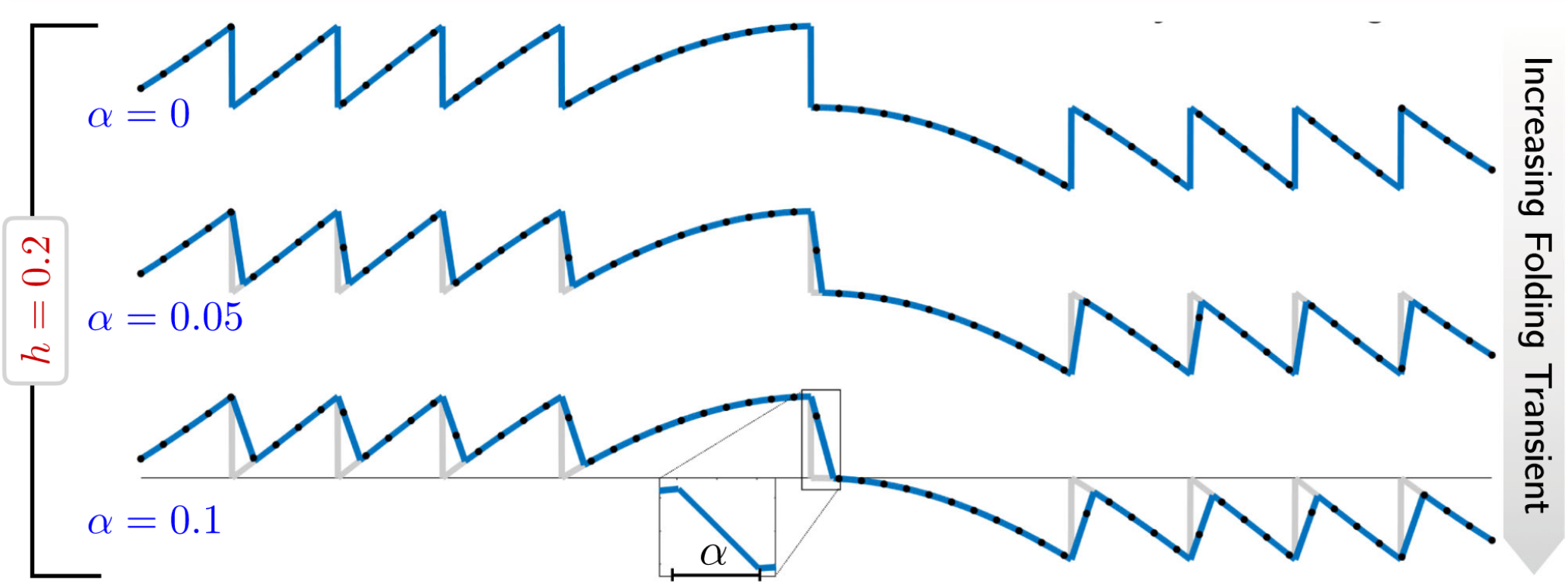 Fig. 5 Effect of Folding Transient \(\alpha\) on Generalized Modulo Encoder.