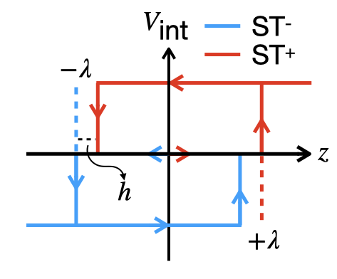 Once \(z(t)\) drops below \(h - \lambda\), \(\text{ST}^{+}\) resets to 0 V, stabilizing the integrator at a constant voltage and completing the folding cycle. The hysteresis parameter \(h\) is manually adjusted, as suggested in [6], to prevent unwanted oscillations and erratic jumps.